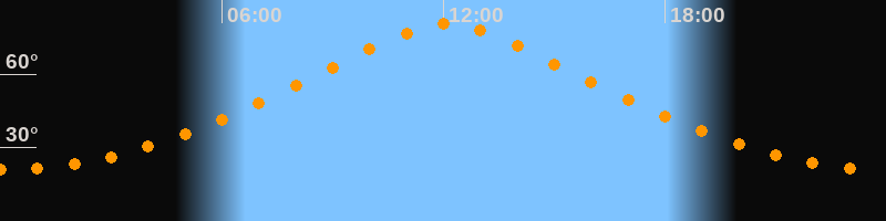 | Höchster Stand (Kulmination) | 12:06 Uhr (h = 80,5°) |