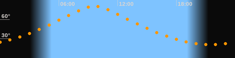 | Höchster Stand (Kulmination) | 09:36 Uhr (h = 80,5°) |
