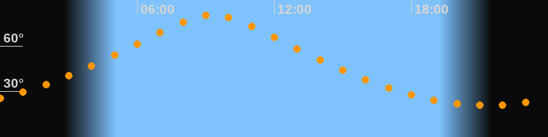 | Höchster Stand (Kulmination) | 09:17 Uhr (h = 80,5°) |