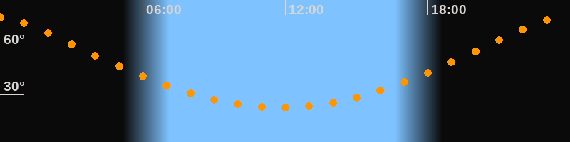 Höchster Stand (Kulmination)23:47 Uhr (h = 79,2°)