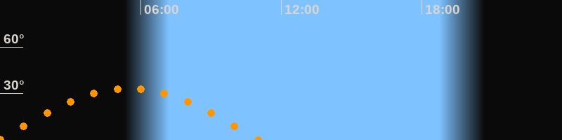 Höchster Stand (Kulmination)05:30 Uhr (h = 33,2°)