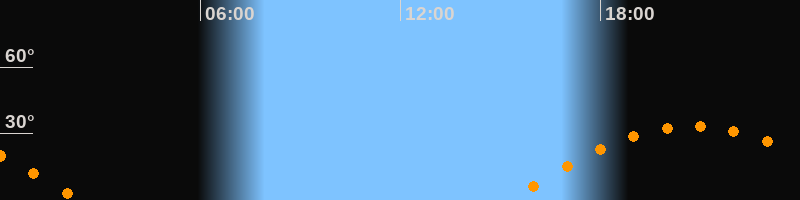 Höchster Stand (Kulmination)20:46 Uhr (h = 33,2°)