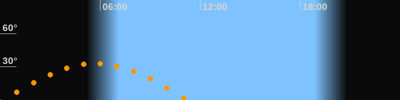 Höchster Stand (Kulmination)05:43 Uhr (h = 33,2°)