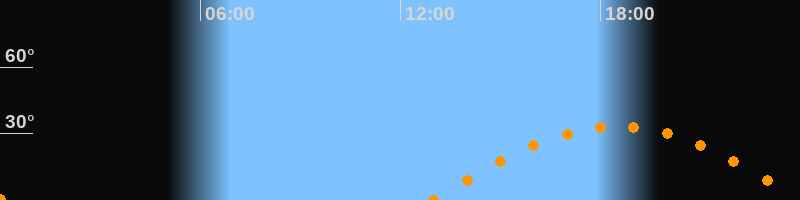 Höchster Stand (Kulmination)18:30 Uhr (h = 33,2°)
