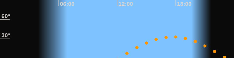 Höchster Stand (Kulmination)17:40 Uhr (h = 33,2°)