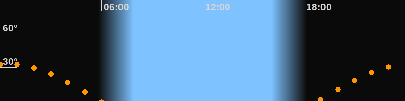 Höchster Stand (Kulmination)00:21 Uhr (h = 33,2°)