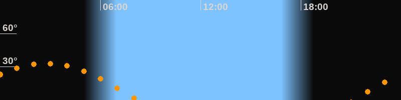 Höchster Stand (Kulmination)02:43 Uhr (h = 33,2°)