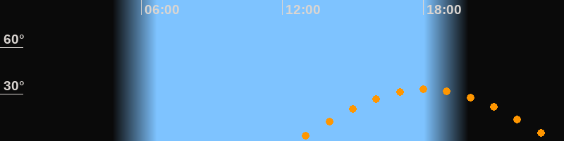 Höchster Stand (Kulmination)18:05 Uhr (h = 33,2°)