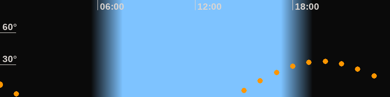 Höchster Stand (Kulmination)19:46 Uhr (h = 33,2°)
