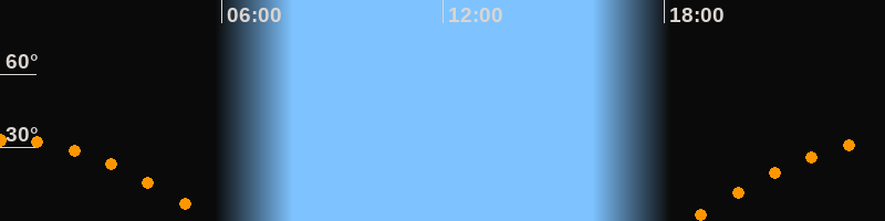 Höchster Stand (Kulmination)00:13 Uhr (h = 33,2°)