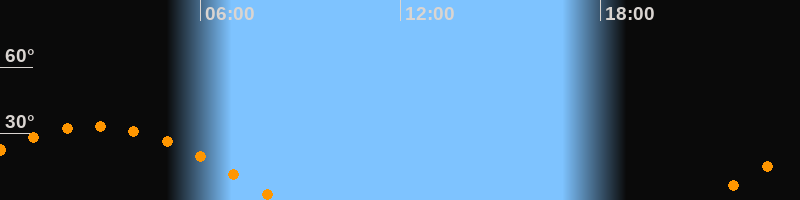 Höchster Stand (Kulmination)02:49 Uhr (h = 33,2°)