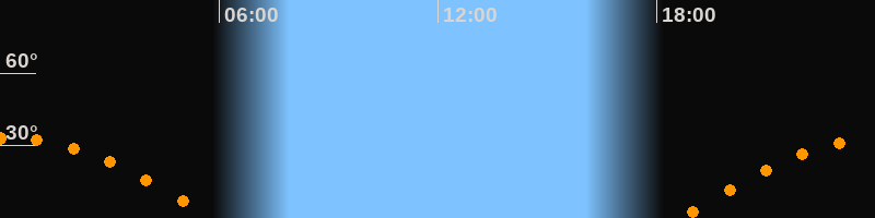 Höchster Stand (Kulmination)00:12 Uhr (h = 33,2°)