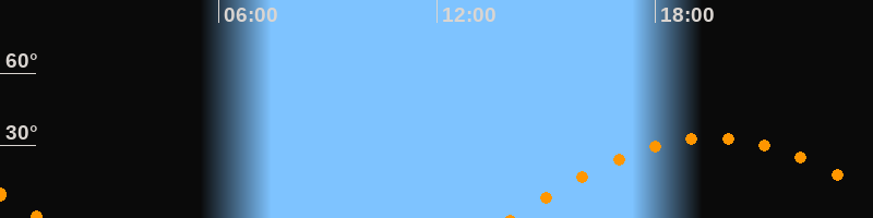 Höchster Stand (Kulmination)19:33 Uhr (h = 33,2°)