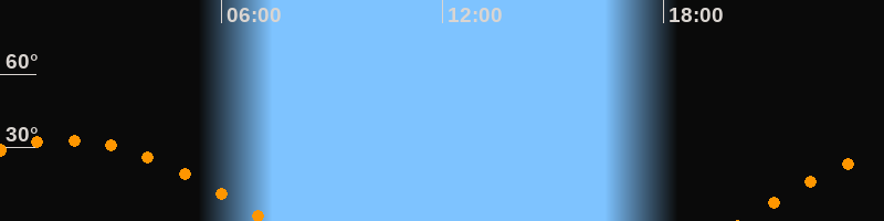 Höchster Stand (Kulmination)01:44 Uhr (h = 33,2°)