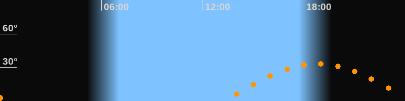 Höchster Stand (Kulmination)18:48 Uhr (h = 33,2°)