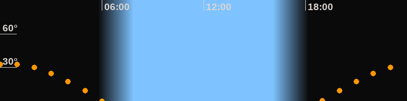Höchster Stand (Kulmination)00:27 Uhr (h = 33,2°)