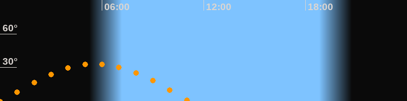 Höchster Stand (Kulmination)05:36 Uhr (h = 33,2°)