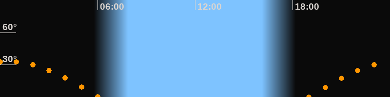 Höchster Stand (Kulmination)00:29 Uhr (h = 33,2°)
