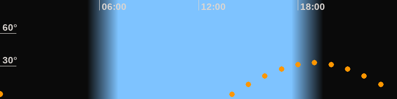 Höchster Stand (Kulmination)19:00 Uhr (h = 33,2°)