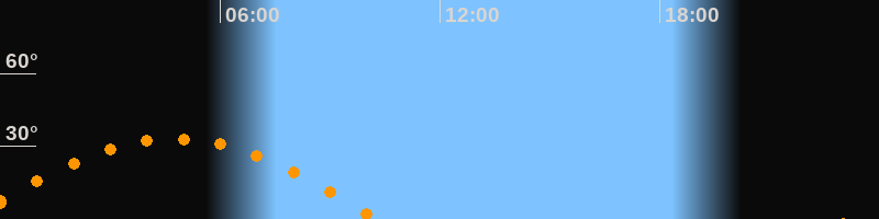 Höchster Stand (Kulmination)04:43 Uhr (h = 33,2°)