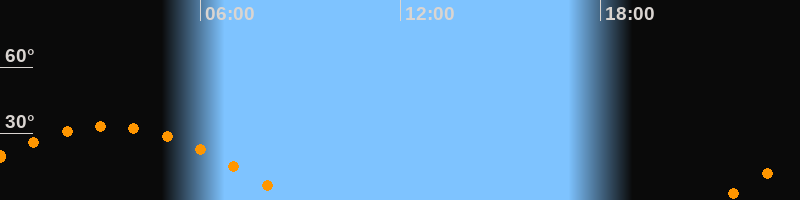Höchster Stand (Kulmination)03:13 Uhr (h = 33,2°)