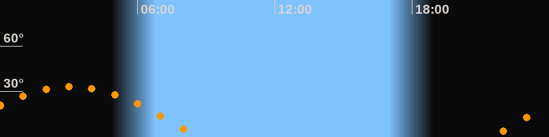 Höchster Stand (Kulmination)03:05 Uhr (h = 33,2°)