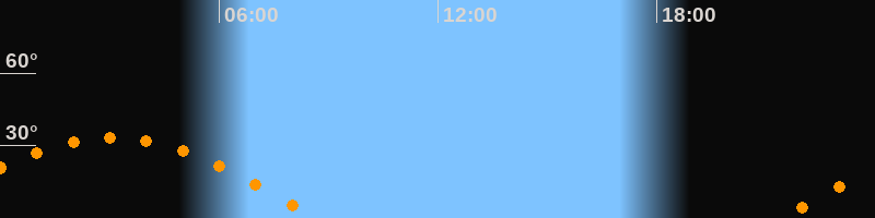 Höchster Stand (Kulmination)03:04 Uhr (h = 33,2°)