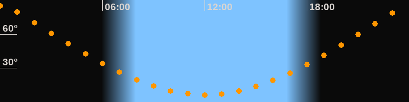 | Höchster Stand (Kulmination) | 00:01 Uhr (h = 85°) |