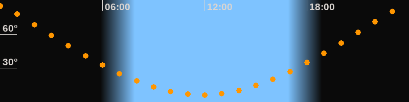 | Höchster Stand (Kulmination) | 23:49 Uhr (h = 85°) |