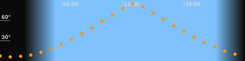 | Höchster Stand (Kulmination) | 13:10 Uhr (h = 85°) |