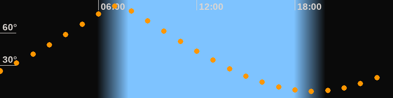 | Höchster Stand (Kulmination) | 07:10 Uhr (h = 85°) |
