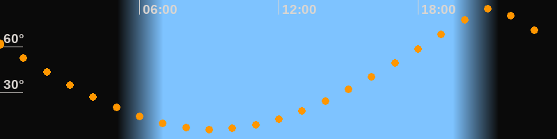 | Höchster Stand (Kulmination) | 21:08 Uhr (h = 85°) |