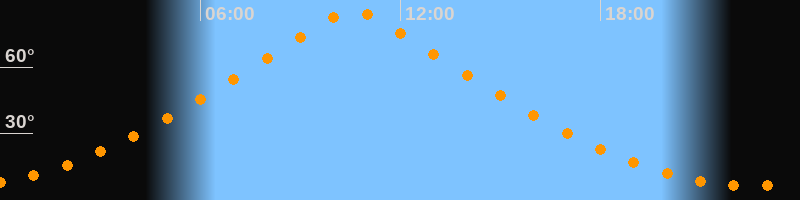 | Höchster Stand (Kulmination) | 10:35 Uhr (h = 85°) |