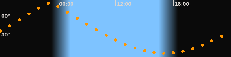 | Höchster Stand (Kulmination) | 05:08 Uhr (h = 85°) |