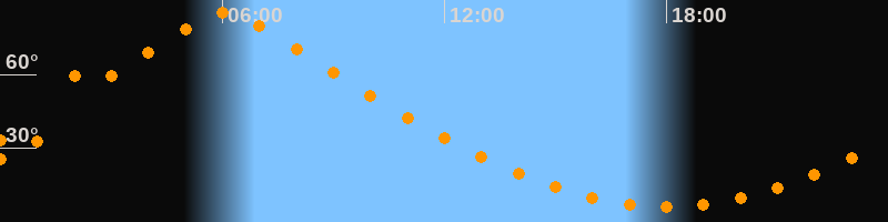 | Höchster Stand (Kulmination) | 06:04 Uhr (h = 85°) |