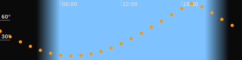| Höchster Stand (Kulmination) | 19:08 Uhr (h = 85°) |