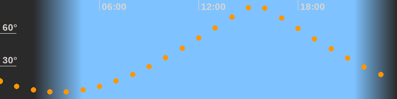 | Höchster Stand (Kulmination) | 15:28 Uhr (h = 85°) |