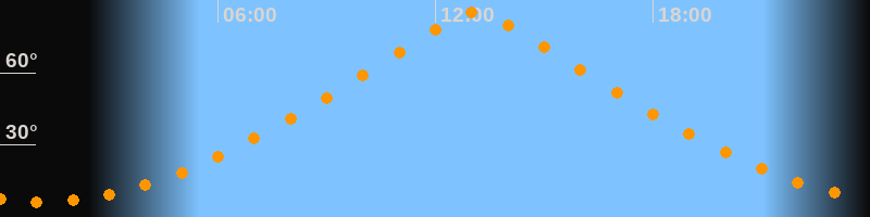 | Höchster Stand (Kulmination) | 13:06 Uhr (h = 85°) |