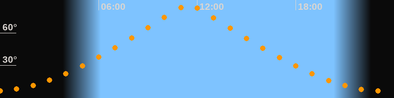 | Höchster Stand (Kulmination) | 11:28 Uhr (h = 85°) |