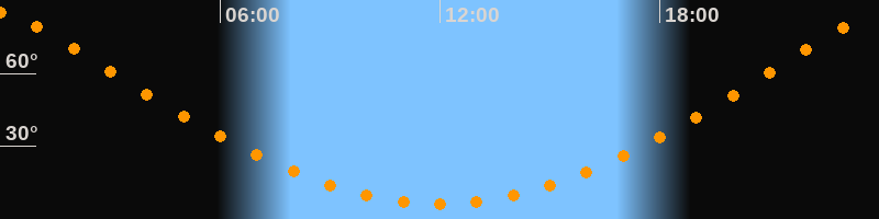 | Höchster Stand (Kulmination) | 23:59 Uhr (h = 85°) |