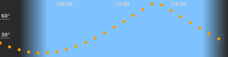 | Höchster Stand (Kulmination) | 16:24 Uhr (h = 85°) |