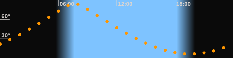 | Höchster Stand (Kulmination) | 07:37 Uhr (h = 85°) |