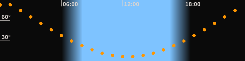 | Höchster Stand (Kulmination) | 00:27 Uhr (h = 85°) |