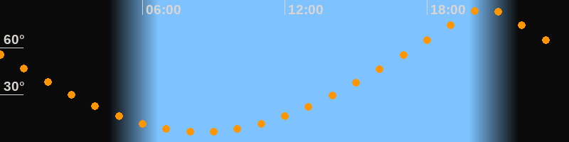 | Höchster Stand (Kulmination) | 20:29 Uhr (h = 85°) |