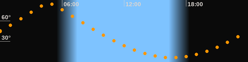 | Höchster Stand (Kulmination) | 04:40 Uhr (h = 85°) |