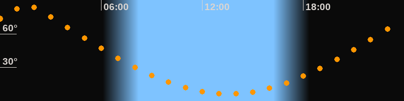 | Höchster Stand (Kulmination) | 01:35 Uhr (h = 85°) |
