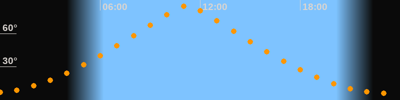 | Höchster Stand (Kulmination) | 11:12 Uhr (h = 85°) |