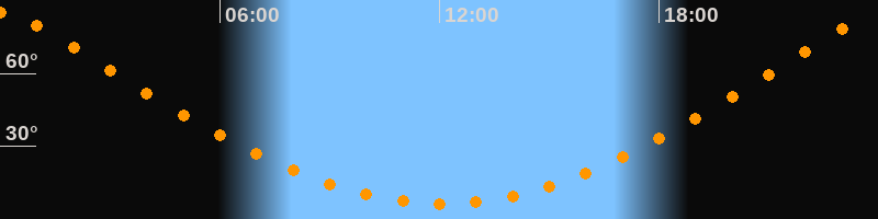 | Höchster Stand (Kulmination) | 00:03 Uhr (h = 85°) |