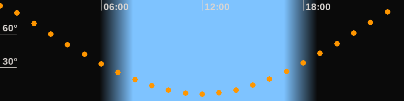| Höchster Stand (Kulmination) | 23:55 Uhr (h = 85°) |