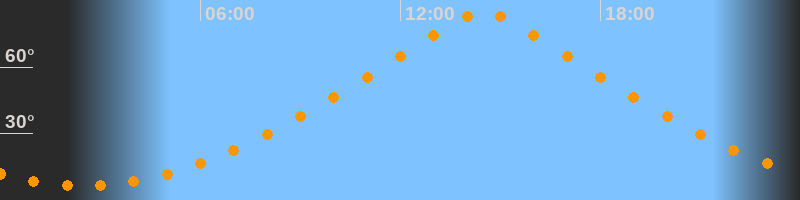 | Höchster Stand (Kulmination) | 14:30 Uhr (h = 85°) |